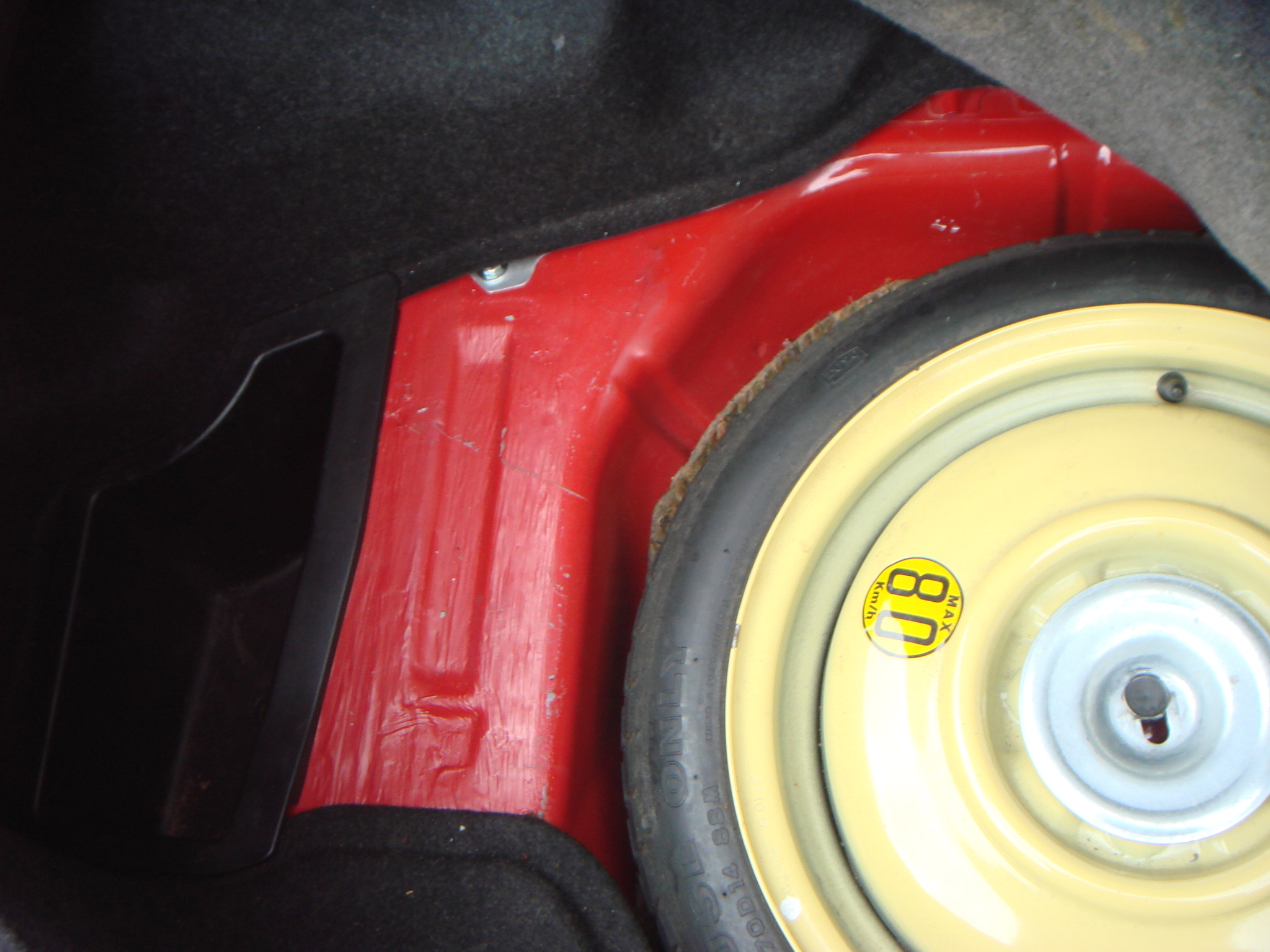 Poškozen závěs pravého zadního kola (obrubník).