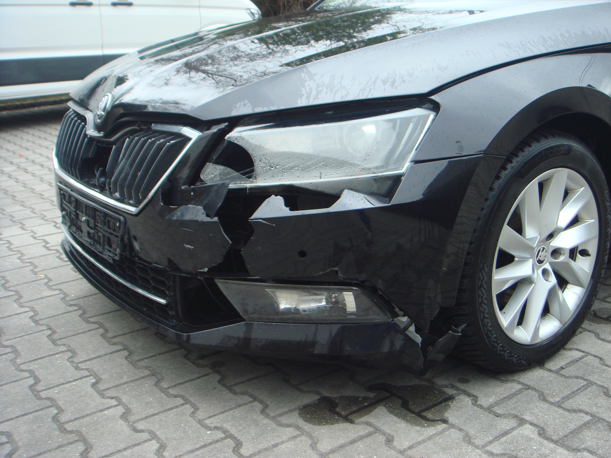 Havarovaný předek po střetu se zvěří.